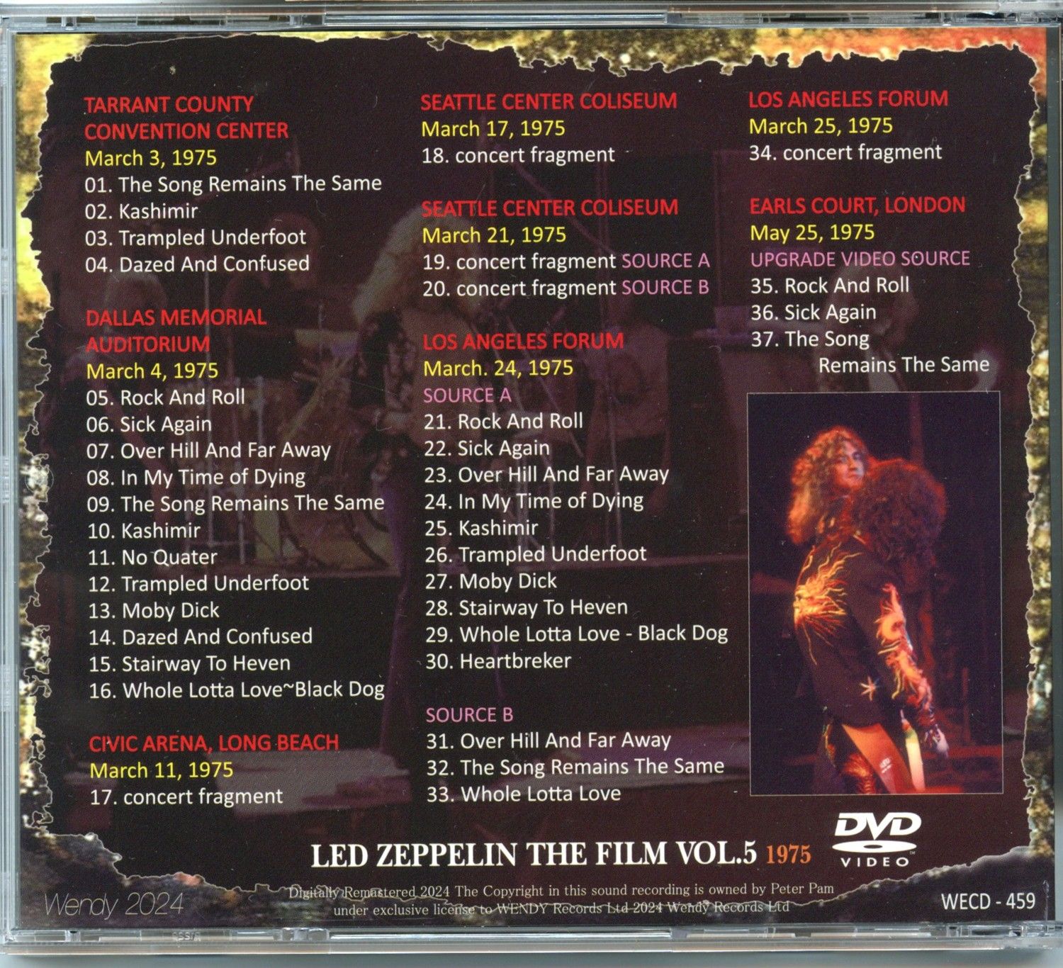 | The Film Vol. 5 1975 ( 1 DVD ) ( WENDY ) ( Tarrant County, Dallas Memorial, LA Forum, Seattle And More… ) | Picture | Tracks |