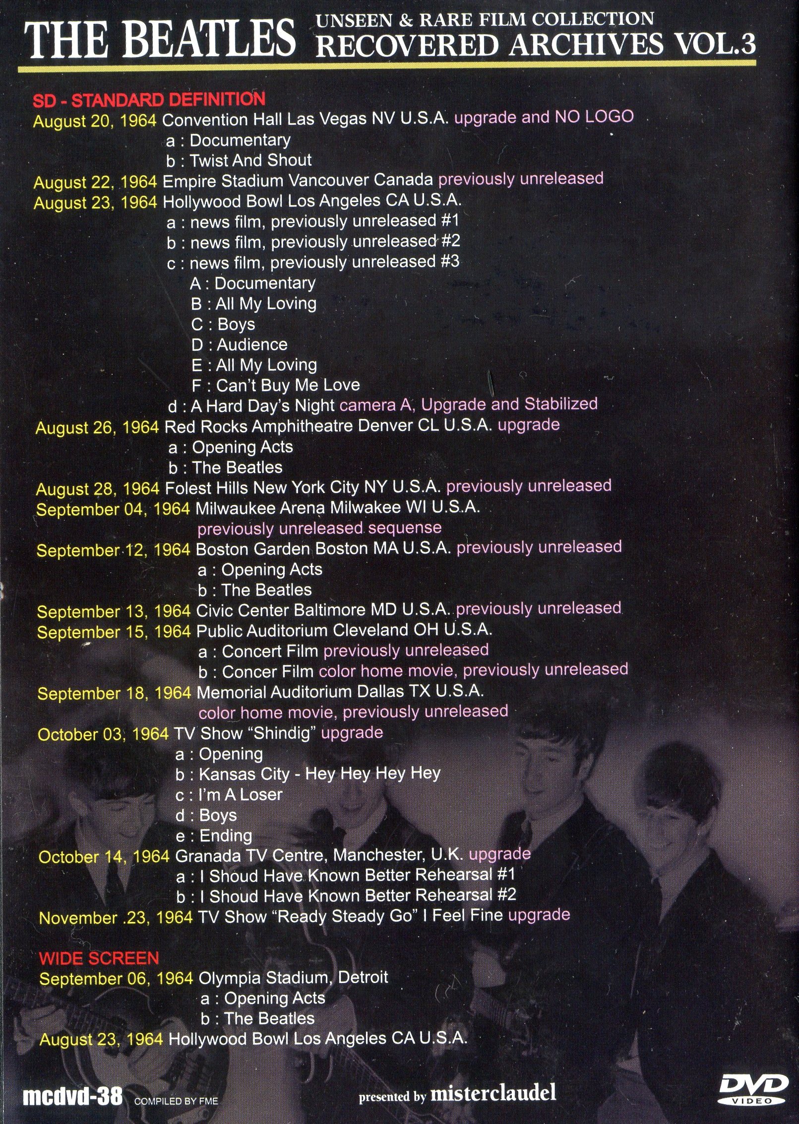 | Recovered Archives Vol 3 (1DVD) The Beatles Unseen & Rare Film Collection ( Misterclaudel ) | Picture | Tracks |