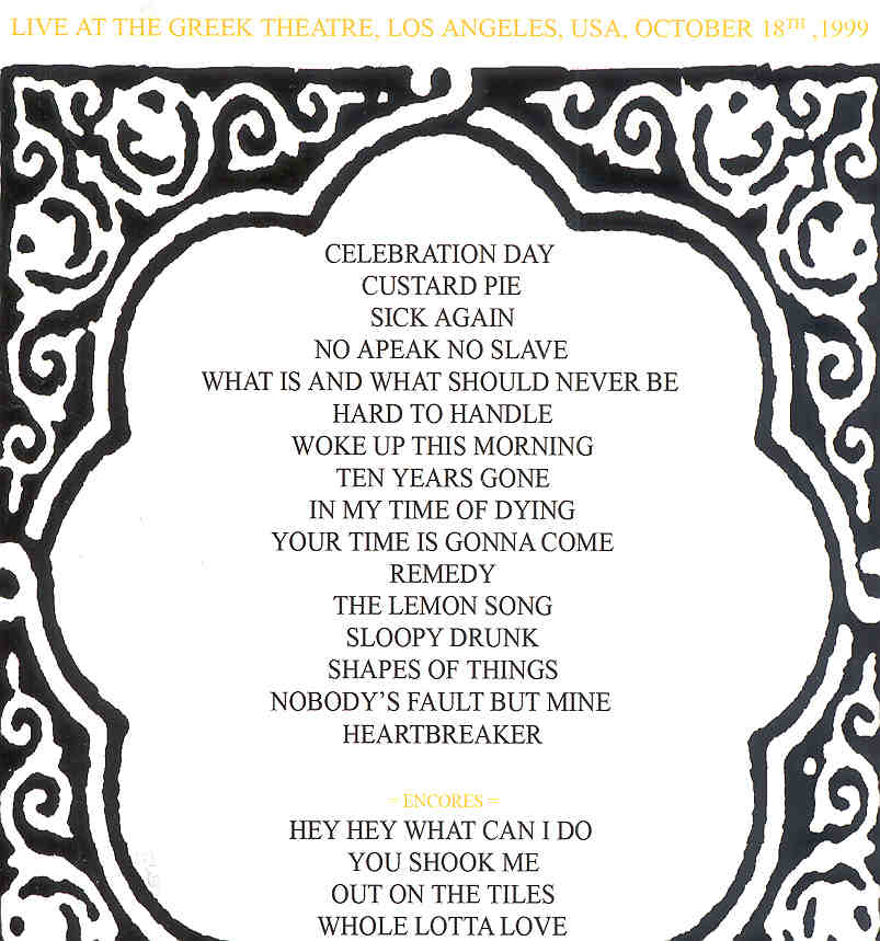 | Jimmy Page & The Black Crows Live At The Greek ( LA , USA , October 18th , 1999 ) | Picture | Tracks |
