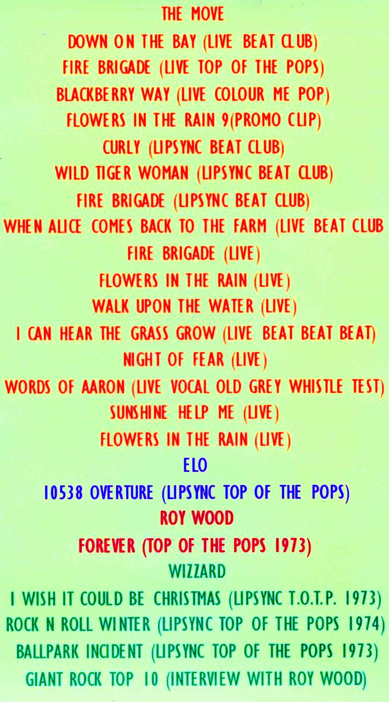 | The Move - ELO - ROY WOOD - WIZZARD Video Collection | Picture | Tracks |