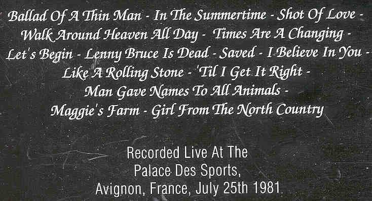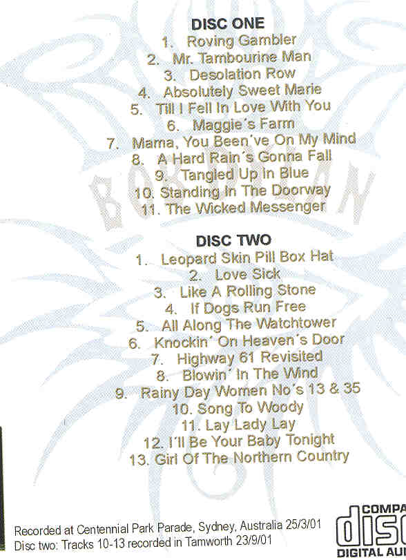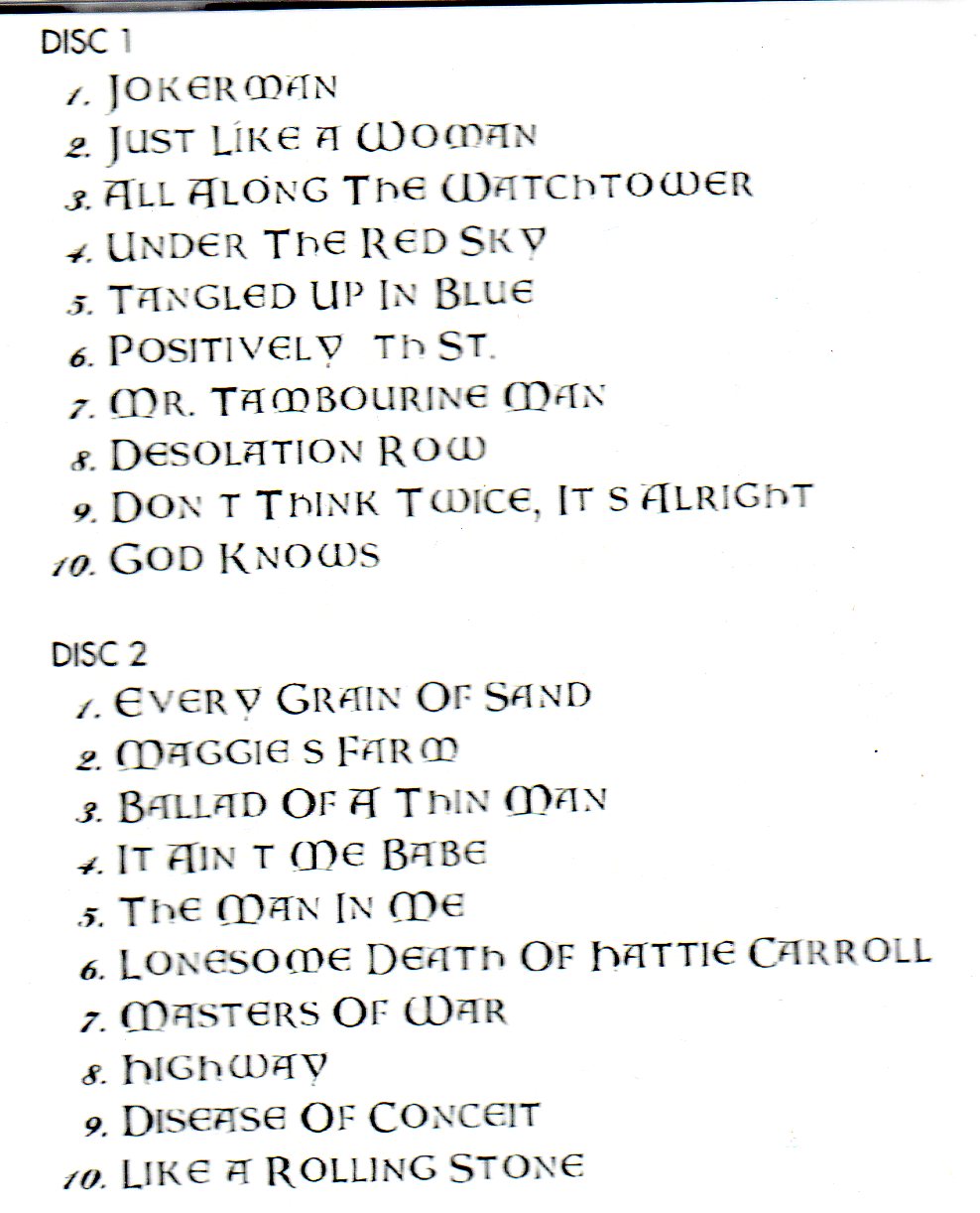 | Bob Dylan LIVE | Picture | Tracks |