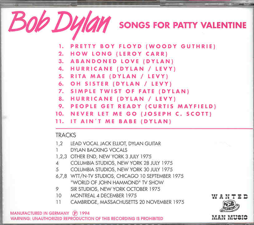 | Songs For Patty Valentine ( 1975 Rarities ) | Picture | Tracks |