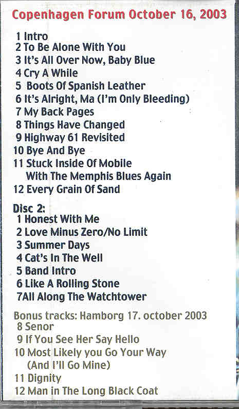 | Things Have Changed ( 2 CD SET ) ( Copenhagen Forum , Denmark , October 16th , 2003 ) | Picture | Tracks |