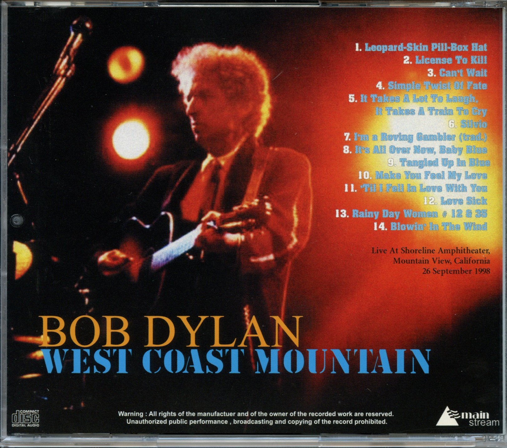 | West Coast Mountain ( Main Stream ) ( Live at Shoreline Amphitheater, Mountain View, California, USA, September 26th, 1998 ) | Picture | Tracks |