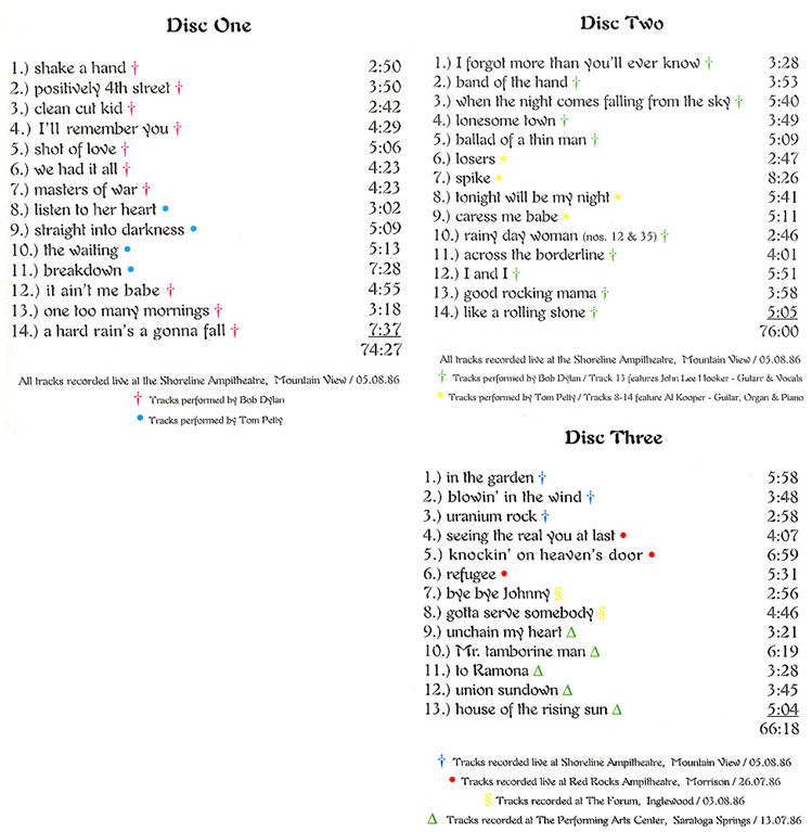 | Washington Confessions ( 3 CD SET ) ( With Tom Petty at Tacoma Dome, Tacoma, WA, USA, July 31st, 1986 ) | Tracks | |