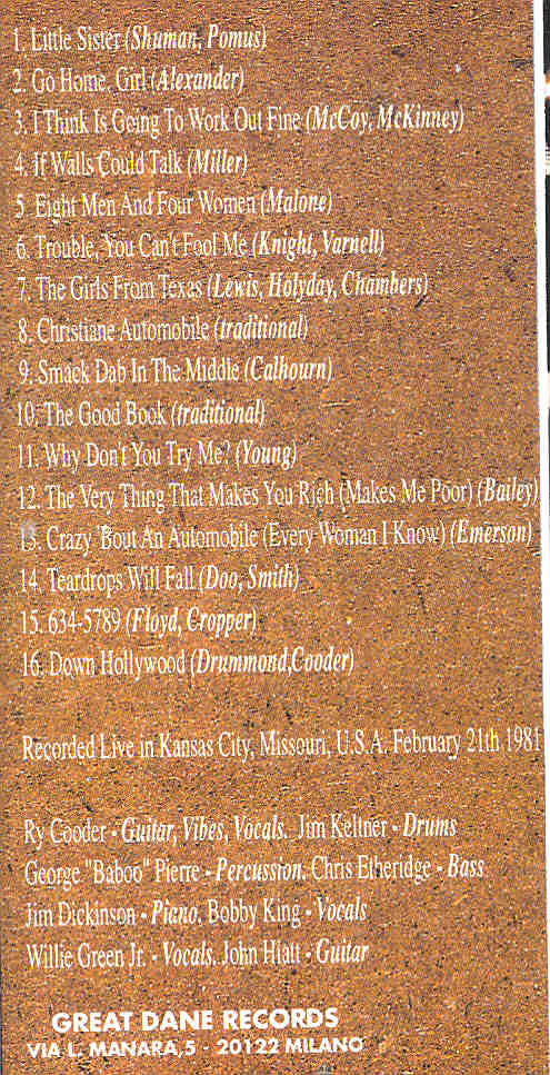 | Ry Cooder Try Me | Picture | Tracks |