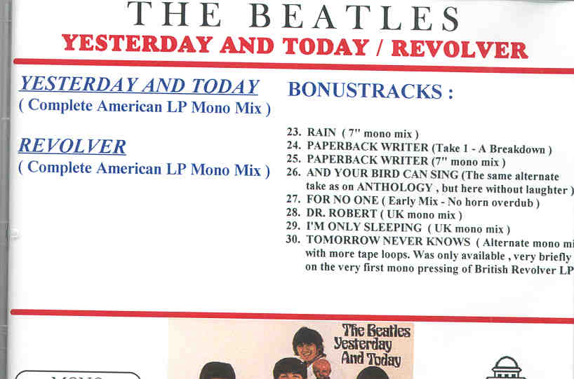 | Yesterday and Today Mono | Picture | Tracks |