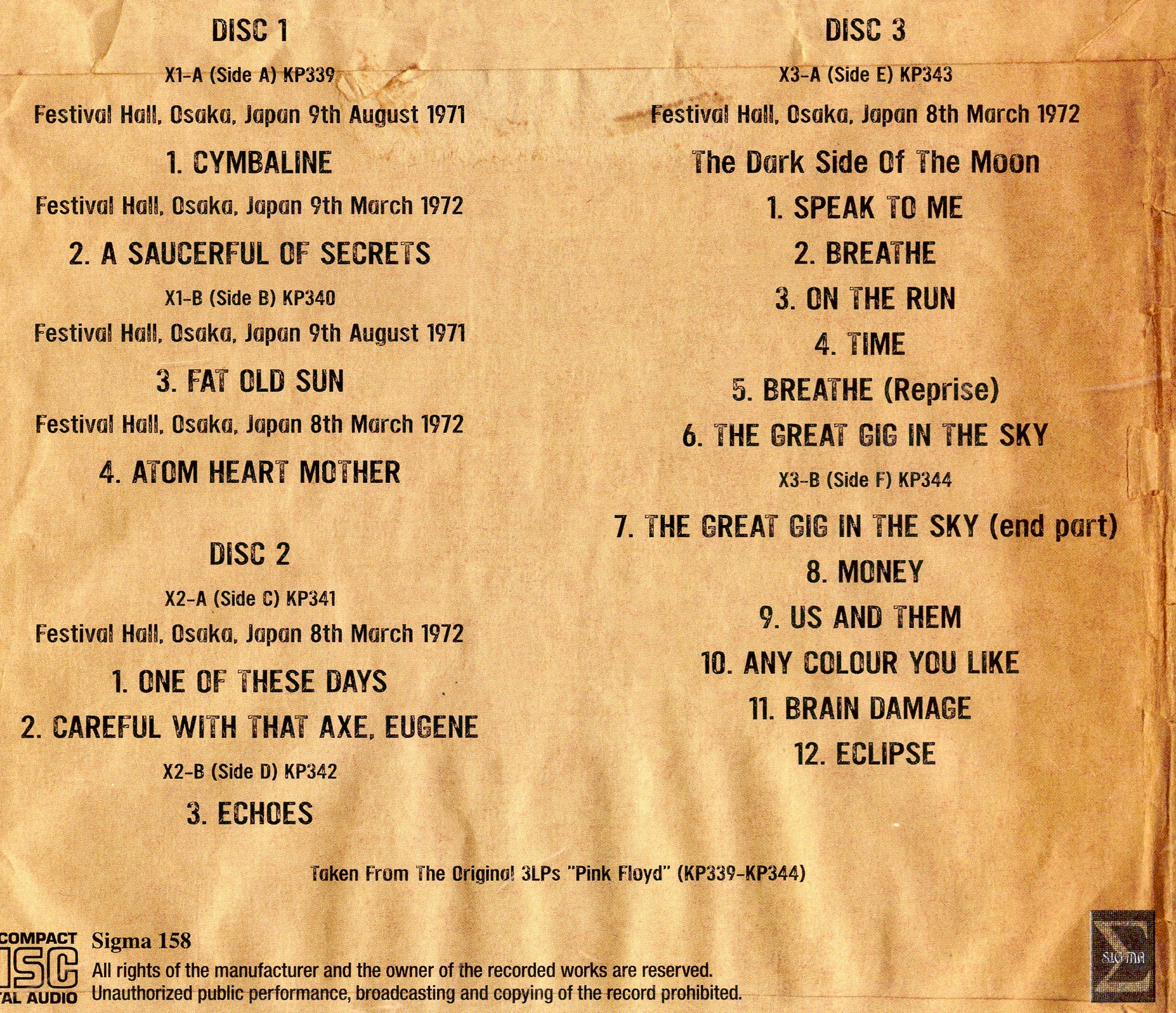 | Wembley 1974 2nd Night (3 Cd Set) ( SIGMA ) (Live at Empire Pool, Wembley London UK 15th November 1974) | Picture | Tracks |