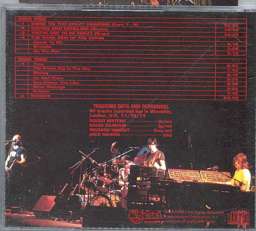 | Animals (wembley 1977 1st Night) (4 cd Set) ( SIGMA) (Live at Empire Pool Wembley London UK 15th March 1977) | Picture | Tracks |