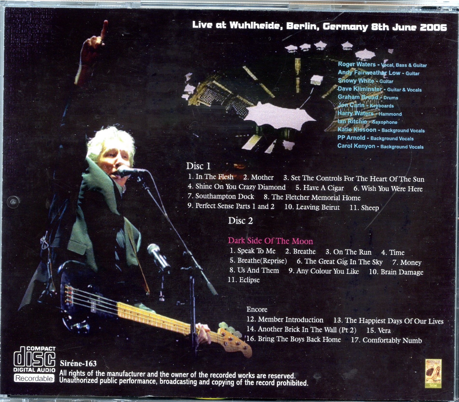 | Arrow Rock Festival 2006 ( 2 CD SET )( SIRENE )( Roger Waters Live at Arrow Rock Festival, Lichtenvoorde, Netherlands, June 10th, 2006 ) | Picture | Tracks |