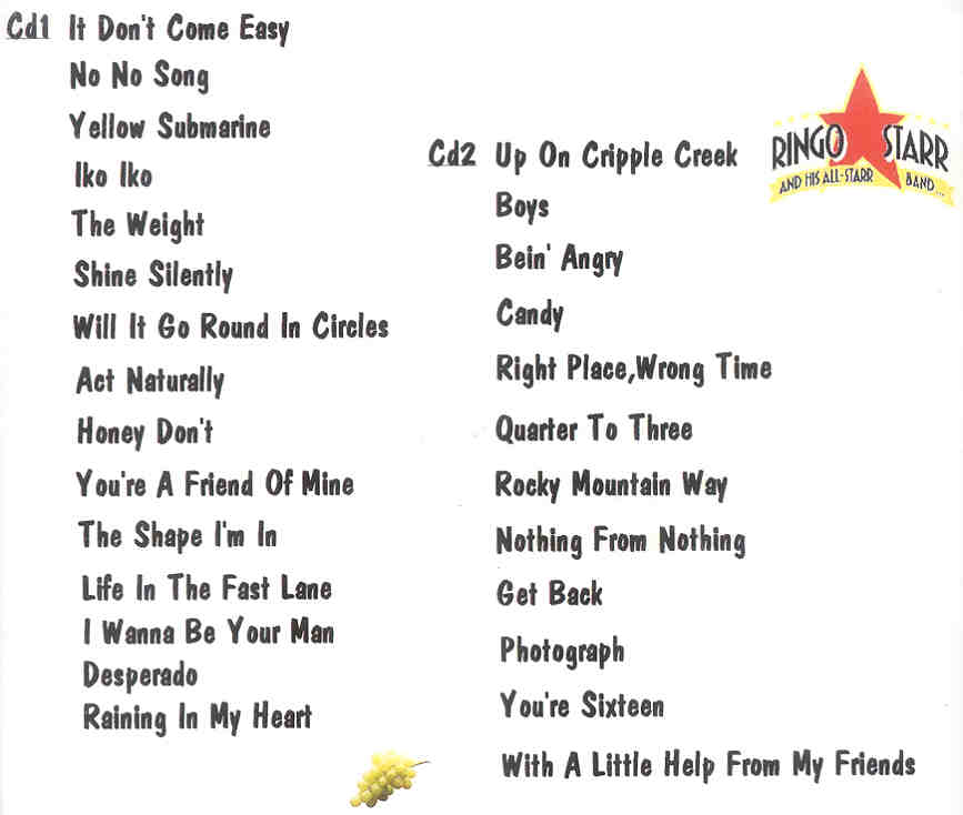 | Ringo Live at Kokura , Japan ( 2 CD SET ) ( Melvin records ) | Picture | Tracks |