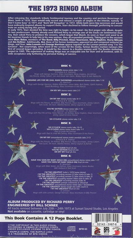 | Ringo Mixing Sessions Reconstructed ( 4 CD SET plus 16 pages booklet ) | Picture | Tracks |