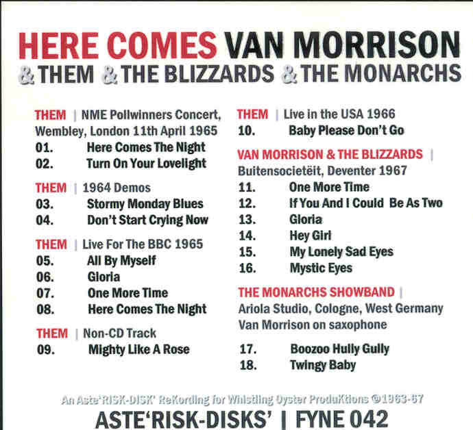 | Here Comes Van Morrison ( Them , The Blizzards & The Monarchs ) | Picture | Tracks |