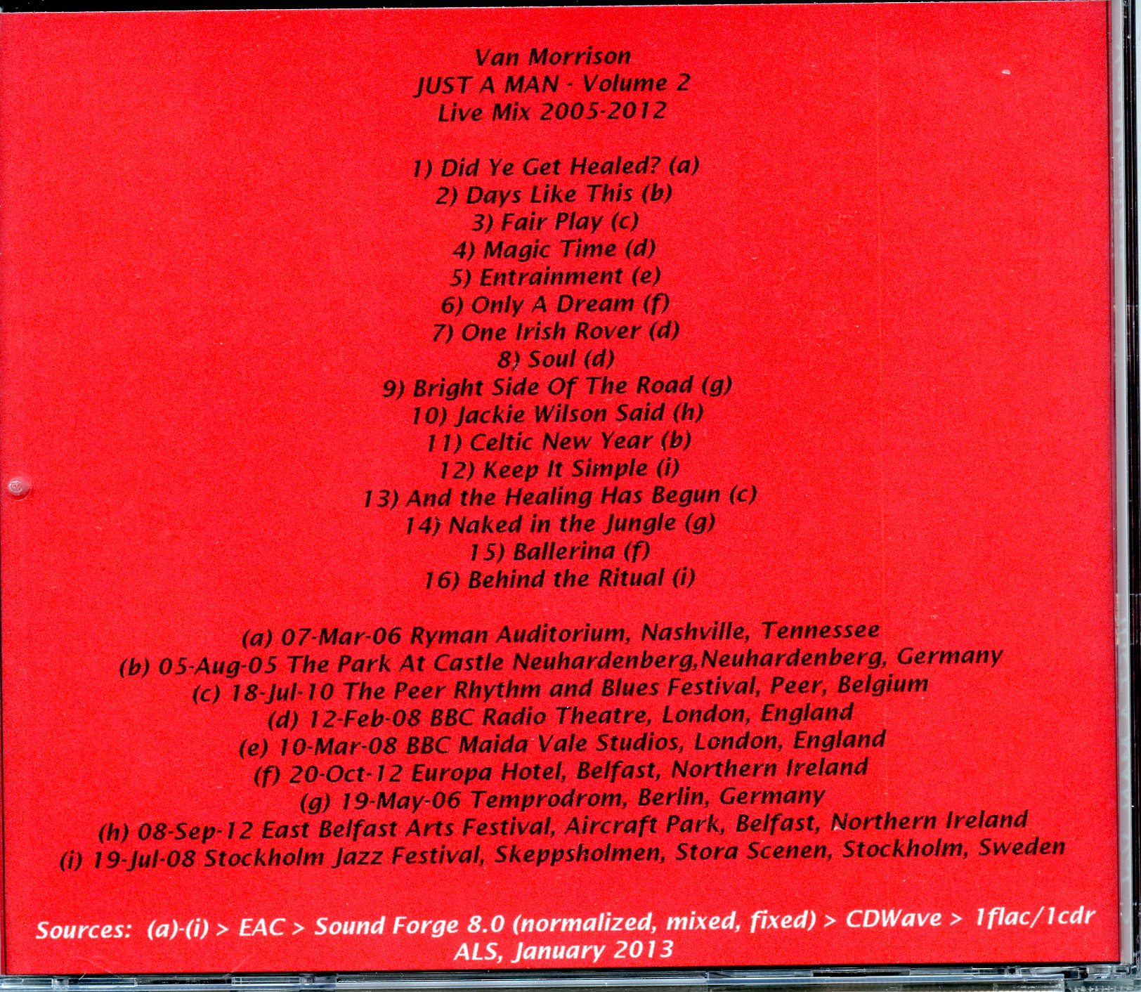 | Just a Man, Vol 1 ( 2 CD SET ) ( ALS, Various Sources, November 5th and May 14th ) | Picture | Tracks |