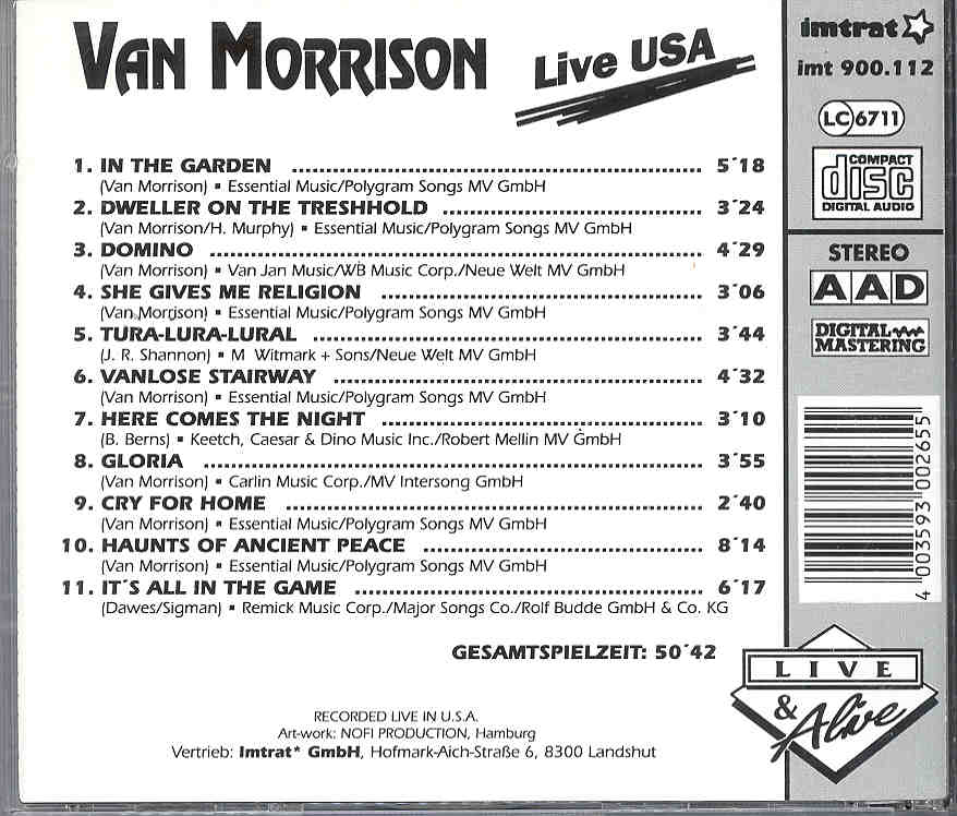 | Van In Ireland ( 2 CD SET ) | Picture | Tracks |